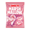 An assortment of pink and white fluffy marshmallows, in the shape of a heart. 12 x140g. Fat Free and Halal suitable.
